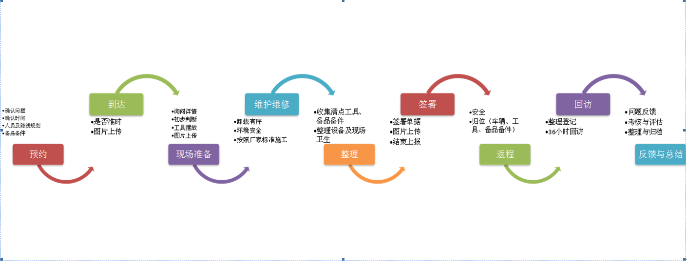 ①對于緊急報(bào)修要求進(jìn)行快速反應(yīng),進(jìn)最大努力、最快時間到達(dá),特別是有特殊要求的。